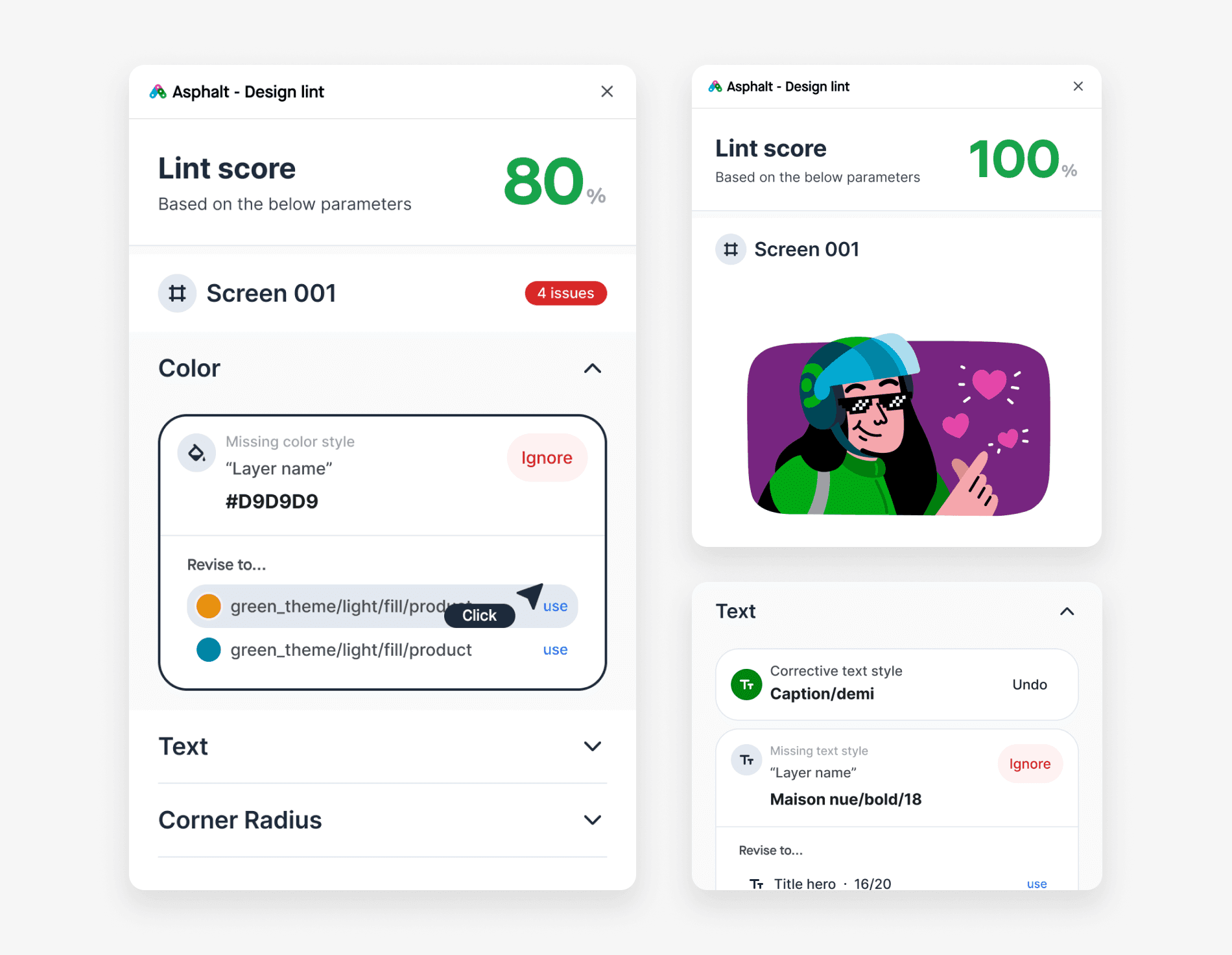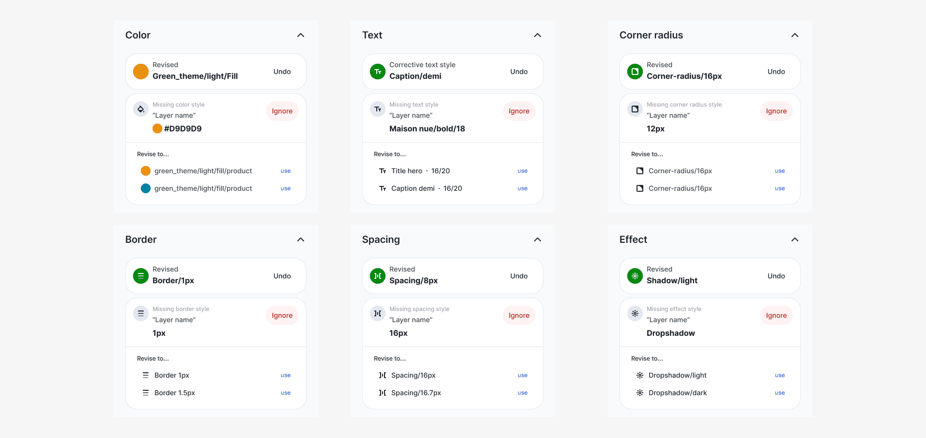 Since the rules are tied to a design system (in this case, Gojek’s), you ensure all designs stay on brand and conform to guidelines.