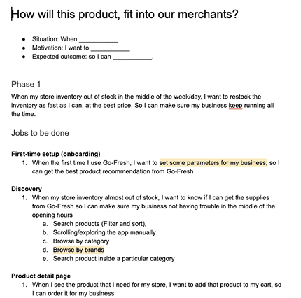 If youβre starting from a blank page, just start by writing, no need for fancy wireframes, sketches, or anything else. Write it down, I use JTBD to structure my initial thinking.